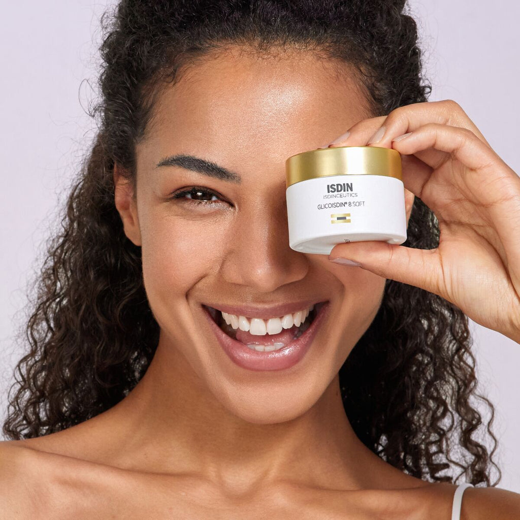 Creme Facial Isdin Glicoisdin 8 Soft: Creme Facial com Efeito Peeling. Com óleo de borragem. Renova. Ilumina. Re-texturiza. Formulado com 8% de ácido glicólico parcialmente neutralizado (equivalente a 3,2% de glicólico livre).